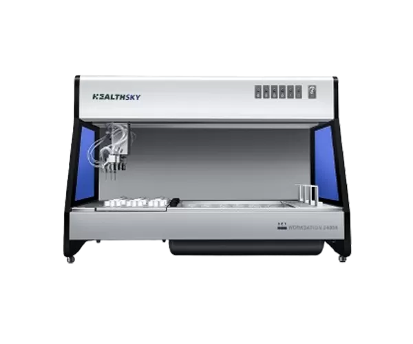 HealthSky SCT Workstation 2400A é uma estação de trabalho baseada em tecnologia citológica de sedimentação de peneira usada para processamento e coloração de slides de citologia.